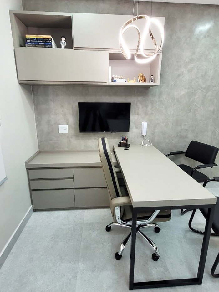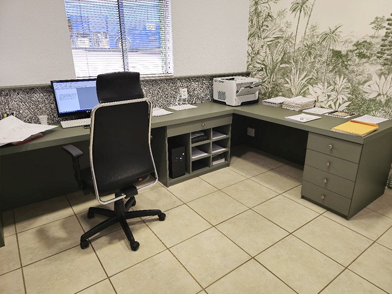 - Armários, arquivos e gaveteiros personalizados, para manter a organização e otimizar o espaço;